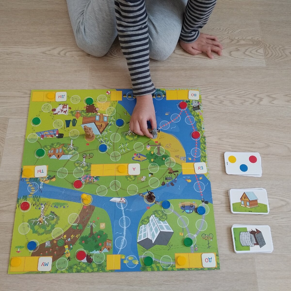 Это самые простые наши игры-ходилки, но от того не менее любимые. И особенно они выручают, когда родители очень устали, а ребёнок жаждет внимания и совместного времяпрепровождения. Потому что ни думать особенно, ни двигаться здесь не нужно. Играть можно даже лёжа.😊