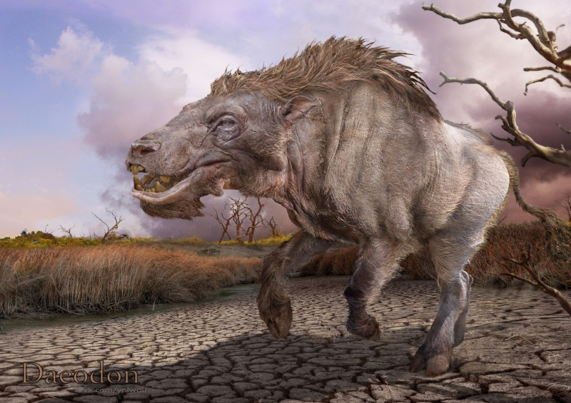 Ну так вот, известно если есть сто человек, то все буду разные и даже если есть два близнеца, то и они будут иметь немного разные характеры. У животные точно так же. Первые свинообразные постепенно расслоились по континентам и разделились по пищевым нишам. Кому то больше еды и много воды досталось и получались аналоги будущих бегемотов. А кто то попал в огромные просторы Северной Америки и стал деодоном. Известна истина, если у людей некто будет ну совсем габаритные в племени, то он может и будет в случае чего отбирать еду что бы нажраться. Но люди это социалы и интеллектуалы, ядовитая стрела и вот излишне буйный мордастый валяется в песке и вороны над ним крачут.