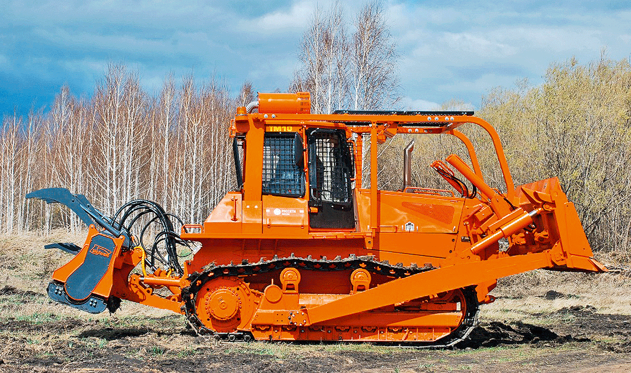 Завод ДСТ-УРАЛ, который входит в Ассоциацию «Росспецмаш», выпустил мощную машину на базе бульдозера D10 с мульчером UM-Forest.