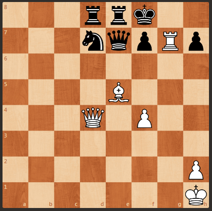 Очередная интересная шахматная задача. У черных лишняя ладья, и они напали на белого слона конем. Белый ферзь стоит слишком далеко от черного короля, и казалось бы, выигрыш на стороне черных. Но белые начинают и выигрывают.