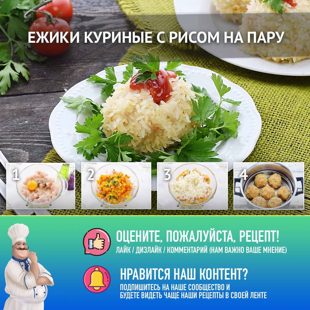 Попробуйте наши другие рецепты куриных тефтелей и ежиков: