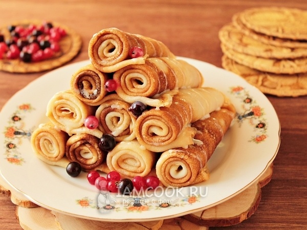Тонкие блины на молоке — это английский вариант традиционных пышных русских блинов, выпеченных на дрожжах. В Европе блинчики имеют вид тонких, почти прозрачных салфеток. Во Франции их называют «крепы» и подают с сотней разнообразных начинок. Никаких особых уловок в приготовлении нет: чем более жидкое тесто, тем тоньше получается блинчики. Ажурный вариант, в дырочку, получится, если часть молока