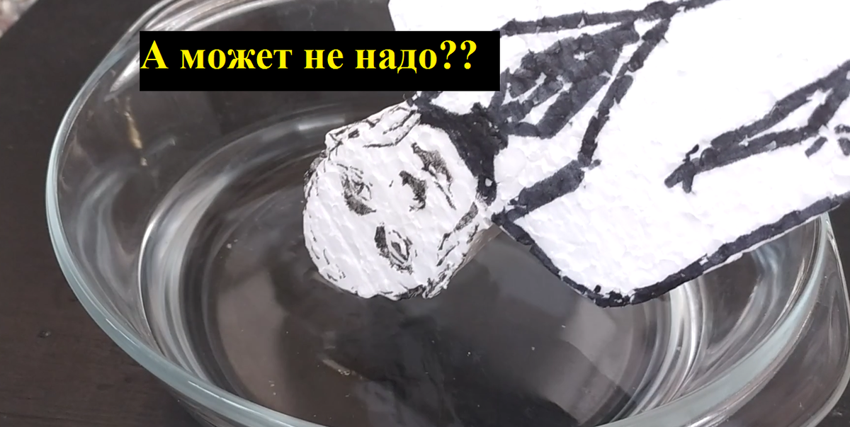 Растворяем пенопластовые фигуры в ацетоне. Сходства с реальными людьми случайны!