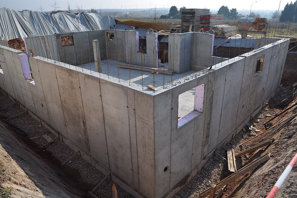 Основанием для дома из бетона может служить плитный, ленточный или свайно-винтовой фундамент, который выбирают в соответствии с такими факторами: структура и характеристики грунта, особенности рельефа территории, несущая способность почвы, расчетные нагрузки и масса здания, уровень залегания грунтовых вод, конструктивные и технические особенности архитектурного проекта.