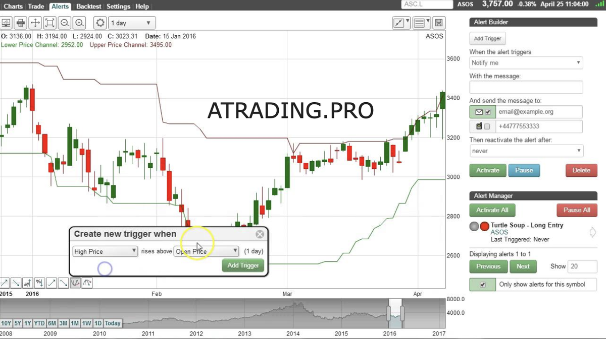 - Разместите стоп-ордер на новый минимальный уровень на 20 баров ниже или на минимум следующего дня, в зависимости от того, какой из них ниже