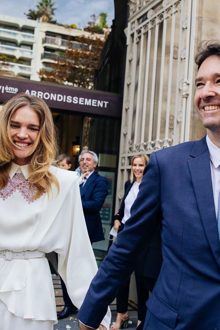 А пока давайте, пожалуйста, поздравим Наталью Водянову и Антуана Арно — пара таки поженилась в понедельник. Скромная в сравнении с их статусами гражданская церемония прошла в Париже. Может быть, самые внимательные наши слушатели помнят, что в 14-м «Мышьяке» я выражала скромную надежду, абсолютно, на самом деле, несбыточную, на то, чтобы Наталья вышла замуж в платье бренда Крестецкая строчка. Словом, Наталья, Наталья Водянова, на своей скромной гражданской церемонии была в платье авторства Ульяны Сергеенко, и на платье был такой лиловый вышитый элемент –сквозная вышивка под воротничком – и это очень похоже на то, что делает «Крестецкая строчка»! И еще один момент — силуэт платья был из 30-х: про 30-е мы говорили в прошлый раз, если вы вдруг пропустили, пожалуйста, послушайте, это очень любопытно.