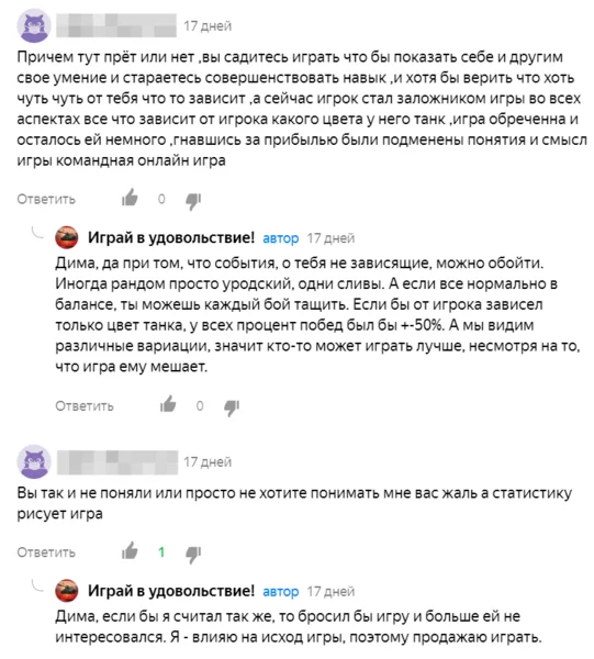 А самое плохое, что куча авторов-идиотов пишут об этом на своих каналах, убеждая, что это действительно так. Пишут, что от игрока не зависит ровном счетом ничего. И что разница между игроками с WN8 4000 и 10000 лишь в том, что один донатит и ему подкручивают акк, а другой не платит денег, и из-за этого он не пробивает никого.