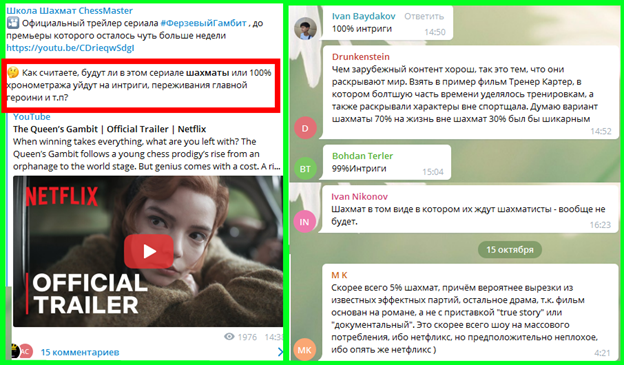 Несколько дней назад мы решили расспросить подписчиков телеграм-канала Школа Шахмат ChessMaster. Вопрос заключался в том, сколько, собственно, шахмат будет в новом сериале от Netflix «Ферзевый гамбит»?