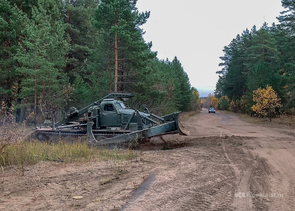 На машине был отвал и стрела для подъёма грузов. Я сразу его узнал! Это надёжный и неприхотливый путепрокладчик БАТ-М. Хотя я думал, что такая крутизна только в музеях и осталась.