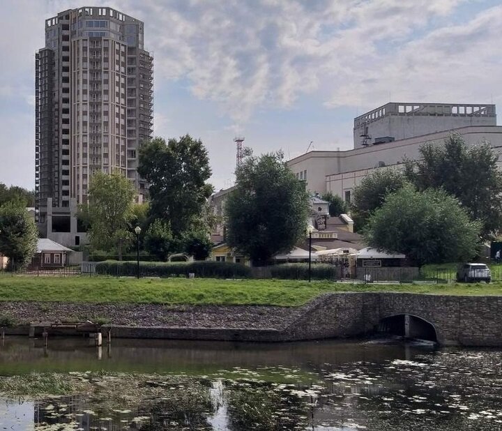 Вы видите на фото с правой стороны у реки есть небольшой портал? Это небольшой отверстия в набережной служит выходным порталом пожалуй одного из самых знаменитых подземных систем России. За этим порталом течет подземный ручей Кокуй в городе Иваново.