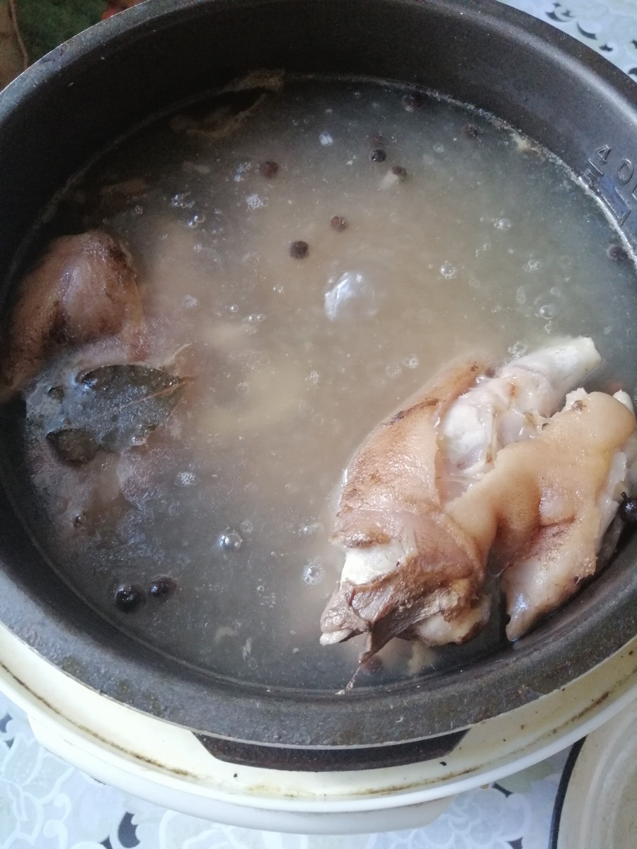 Отвариваю кости (рулька или копыта свиньи).