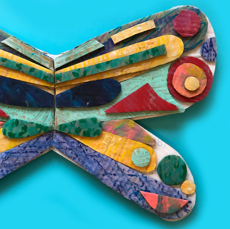 Покройте крылья с изнанки краской одного цвета, затем закрепите посередине резиночки для рук.