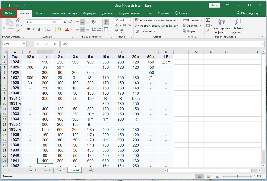 1. Чтобы поставить пароль, нужно нажать на вкладку "Файл" в верхнем меню: