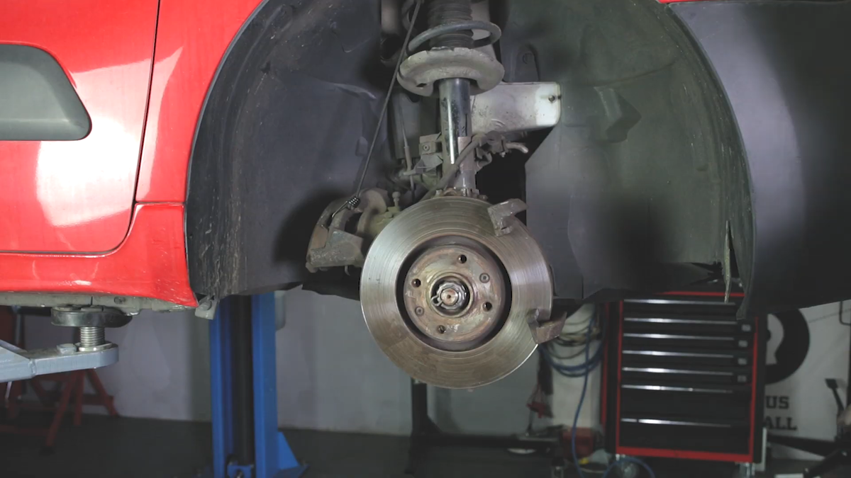 Поднимите на домкрате одну сторону машины и снимите колесо. После этого нужно ослабить болты, на которых закреплен суппорт. Ослабив винт клапана прокачки, снимите суппорт с диска и отведите его в сторону.