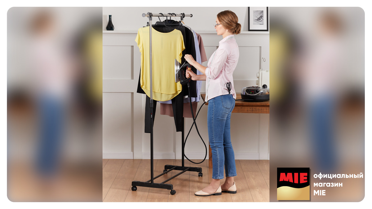 Напольная вешалка MIE А идеально подходит для костюмов, платьев, рубашек, пиджаков и брюк. С её помощью можно подготовить одежду для любого мероприятия. В сочетании с ручным отпаривателем MIE A позволяет легко расправить все складки, придав наряду безукоризненный вид. Стойка удлиняется до 151 см — это оптимальная высота, при которой работа по отпариванию одежды не вызывает затекания рук и утомления. Модель оснащена двумя держателями для брюк, складными плечиками, которые регулируются под размер одежды. В верхней части предусмотрены 4 крючка для подвешивания дополнительных плечиков, развески и хранения других вещей, например, шарфа или головного убора. У MIE A устойчивое основание с колёсиками, благодаря которым она легко перемещается. Вертикальная конструкция вешалки занимает минимум пространства и отлично дополнит интерьер комнаты, офиса или гардеробной.