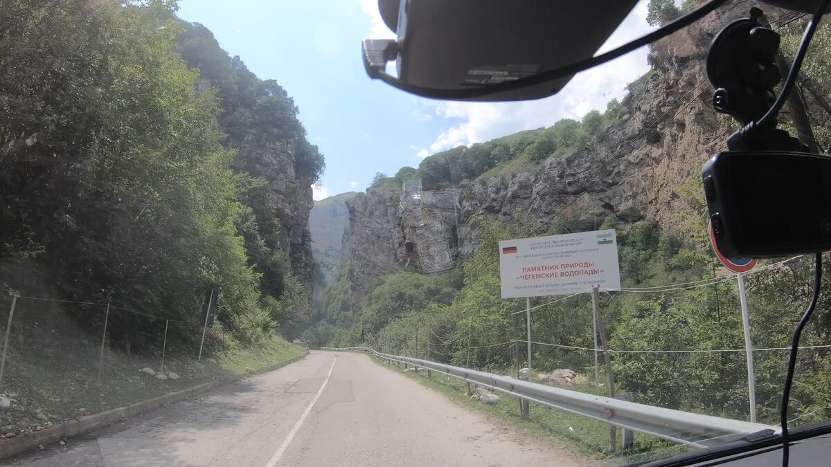 Дорога становится уже, справа показалась река Чегем, в которую впадают водопады, к которым мы приближаемся.