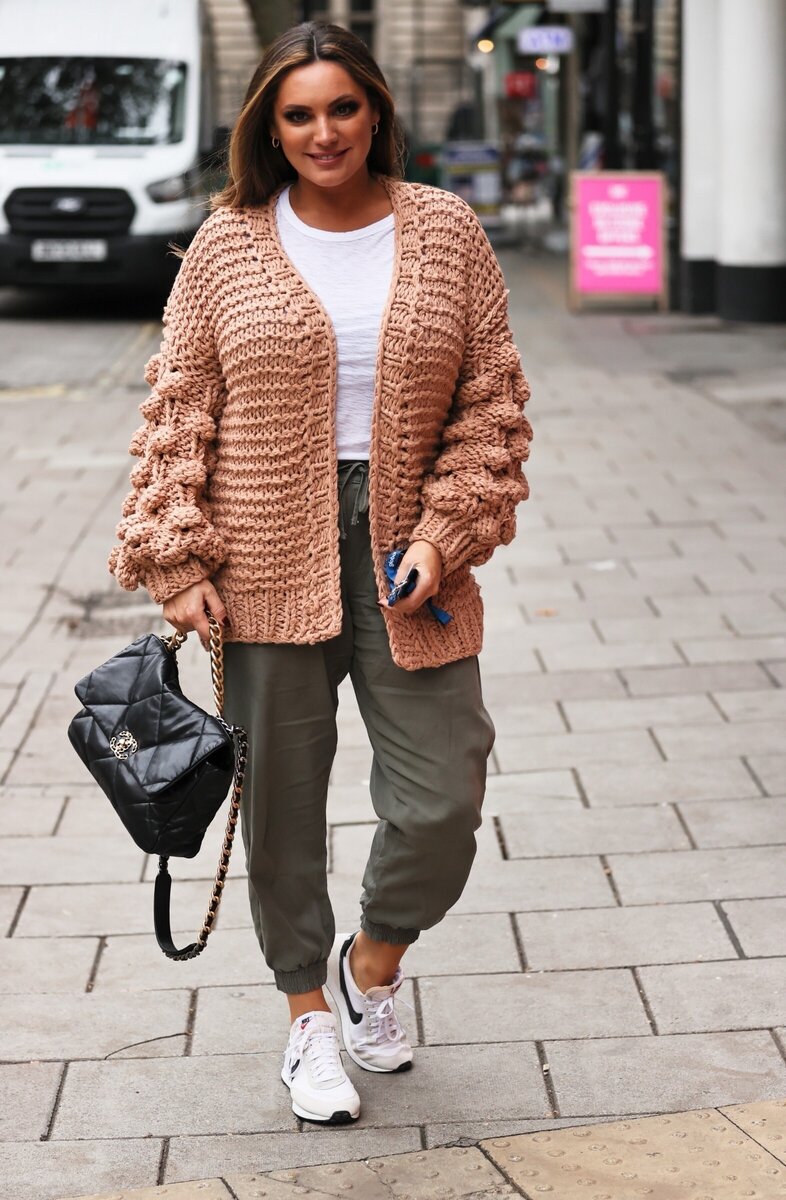 Погожим осенним днем незачем скрывать великолепие вашего аутфита под длинной одеждой, подойдет кофта свободного кроя. Если погода позволяет, такой фасон можно носить "соло". Прямые кожаные брюки эффектно смотрятся на стильной и уверенной в себе даме. В повседневном ансамбле целесообразно использовать удобную обувь, как это делает Келли Брук.