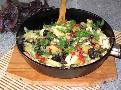 6. Свежую зелень укропа мелко нарезаем, и посыпаем готовое блюдо. Можно добавить несколько листиков регана. Подаем к столу горячим. Блюдо получается вкусным и ароматным. Всем желаю приятного аппетита!