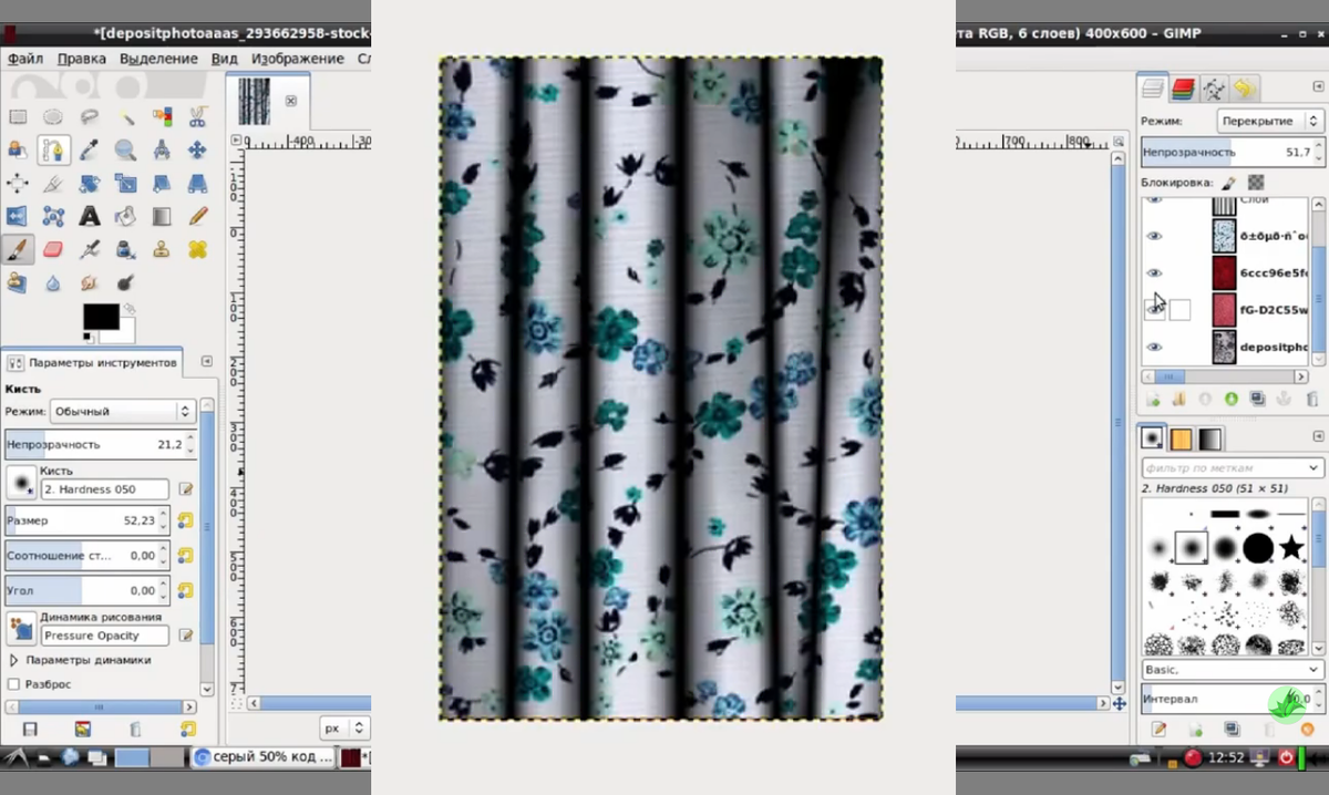 Как нарисовать занавеску в Gimp быстро. Для этого нужно выполнить несколько простых действий. Ищем в интернете текстуру ткани. Открываем ее в Гимпе и в меню слоев над слоем с тканью создаем новый пустой слой. Затем:
