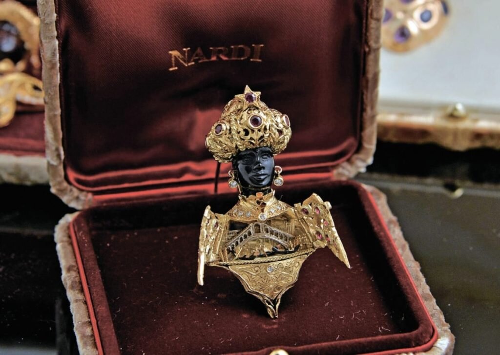 Интересно, что украшения в виде негритянской головки были распространены в Средиземноморье довольно давно и считались оберегом от пиратов. В Венеции такие украшения стали делать в новом стиле – из дорогих материалов и драгоценных камней, с явными восточными или мусульманскими деталями.