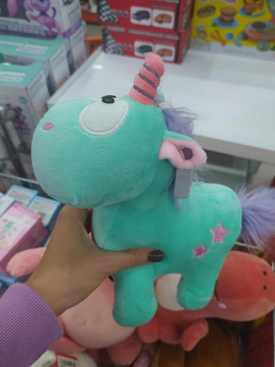 Яркие мягкие игрушки: дракончик, единорог или привычный плюшевый мишка. Стоят игрушки не совсем дёшево: от 400 рублей. Но на ощупь приятные, сшиты качественно.