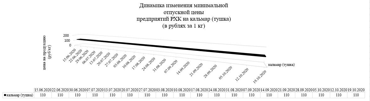 Динамика изменения минимальной отпускной цены предприятий РХК Сахалинской области на рыбную продукцию и морепродукты за период с 15 июня по 19 октября 2020 года в наших карточках.
