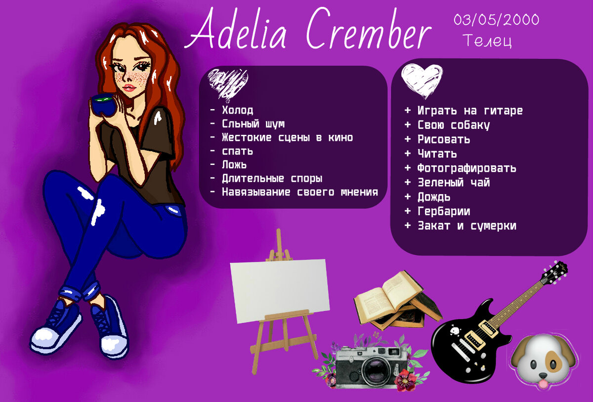 Привет, меня зовут Аделия. Мне 20 лет. И я хочу пригласить тебя присоединиться к моему уютному стади-блогу. Здесь мы, вместе с тобой, будем учить английский, смотреть хорошее кино, читать книги и стремиться к своим целям. Расскажи мне о своей цели, а я тебе пока расскажу о своей.