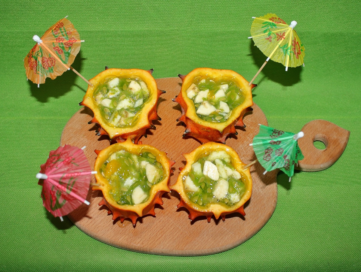 Если ваши гости следят за своим здоровьем и предпочитают полезную еду, удивите их, приготовив легкий салат из кивано, яблок и бананов.