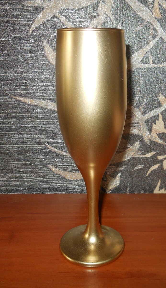 Взяла два бокала покрасила из баллончика в золотой цвет.