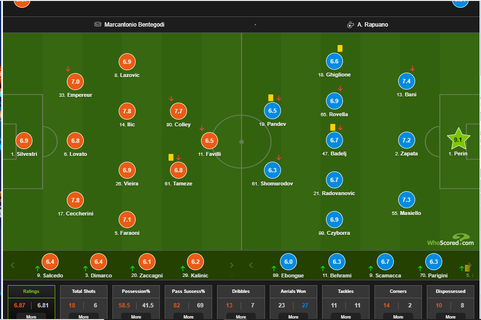 Элдор был заменен первым в составе своей команды, даже раньше Пандева, которому 37 лет. Элдор провел 64 минуты и был заменен на Скамакку.