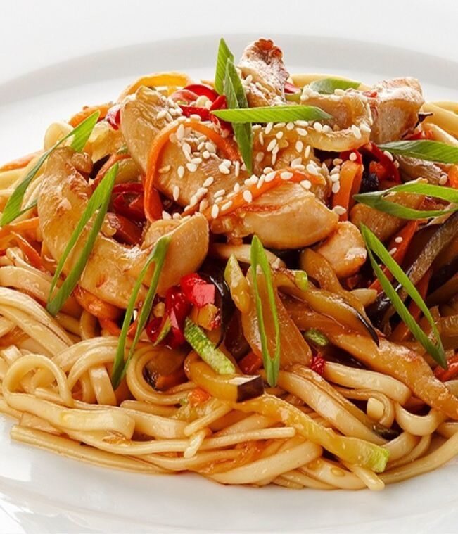 Удон можно приготовить с курицей, с морепродуктами( можно использовать морской коктейль) или просто с овощами.