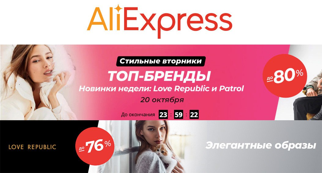 Сегодня Али запустил акцию одного дня «Стильный вторник». В каталогах найдёте немало одежды и обуви от различных брендов. Love Republic, Patrol, Winterra, Tangada и других с выгодой до 80%! А для дополнительной скидки обязательно применяйте промокоды. С ними сэкономите до 3500₽ сверху.