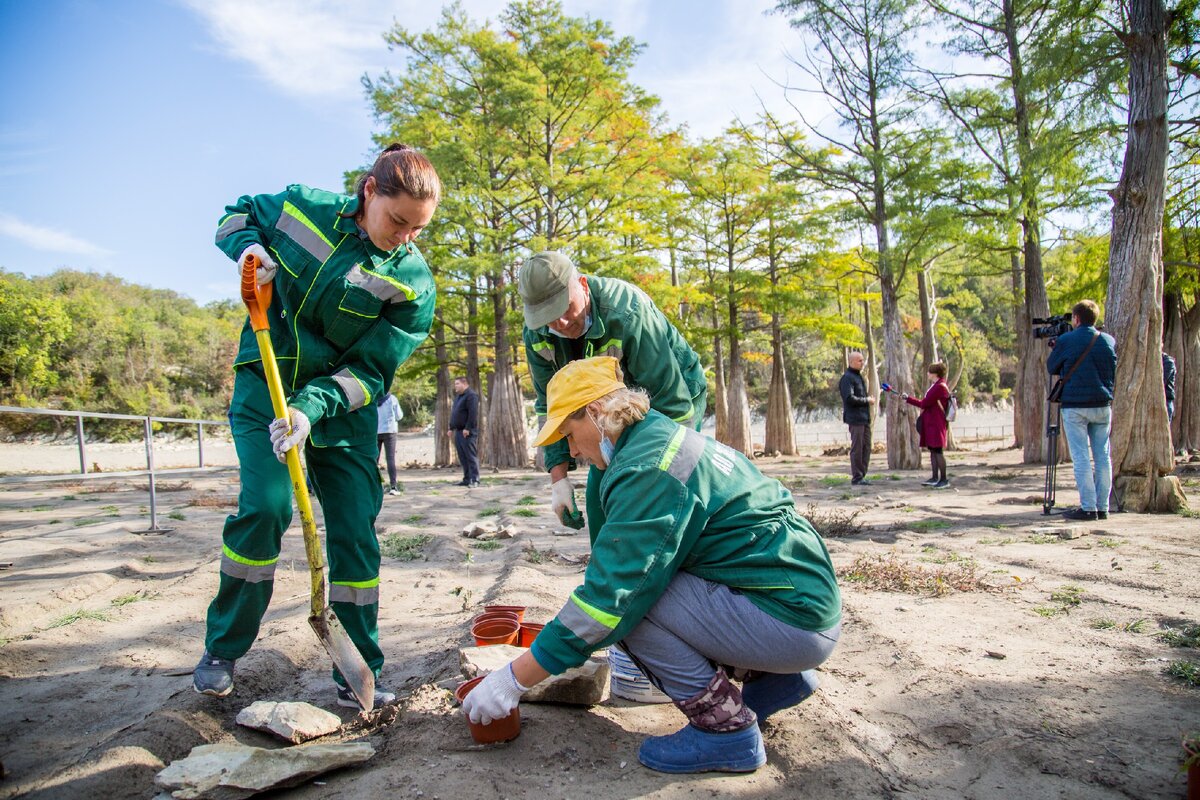 Сегодня в Сукко впервые прошла акция по пересадке однолетних сеянцев редких болотных кипарисов, растущих в самом сердце озера. В этом году из-за аномальной засухи водоем обмелел. Деревья спасали всем миром – ограничили к ним доступ, организовали регулярный полив. Однако именно засуха поспособствовала росту молодой поросли. Ранее семена погибали в воде.