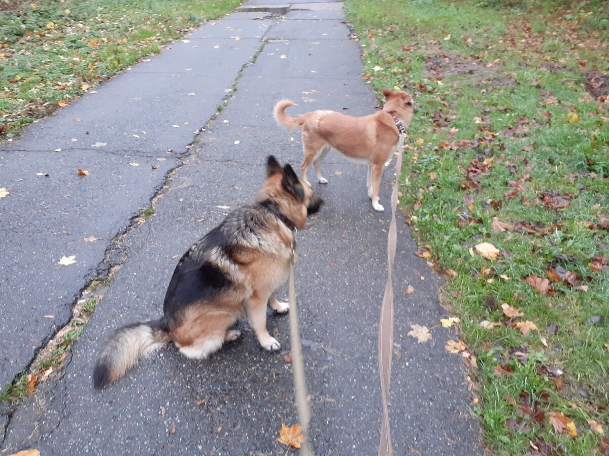 Хозяйка Луши уехала, и я пошла гулять с двумя собаками. Вышли с Кирой, по пути зашли за Лушей домой и вперед - в лес.