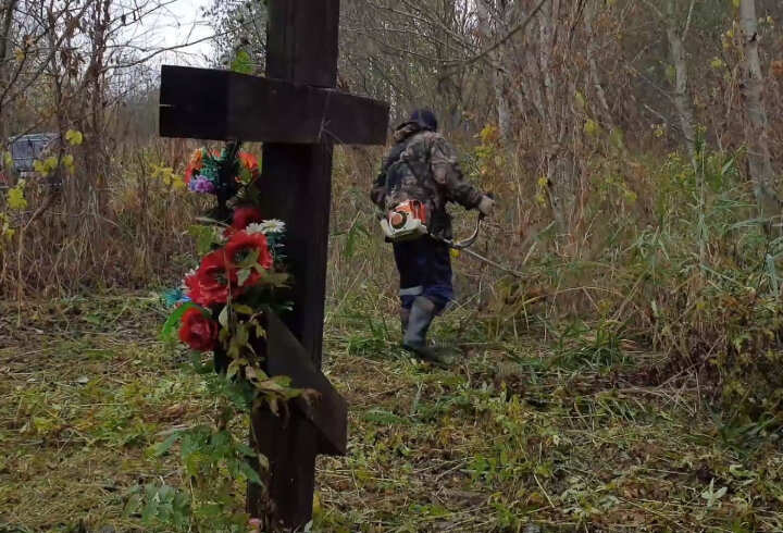 Работы по благоустройству были проведены в понедельник, 19 октября, сотрудниками МБУ "Городская служба благоустройства – Парк" и администрацией Сясьстройского городского поселения. Они спилили сухостой на территории возле креста, а также скосили и убрали траву.