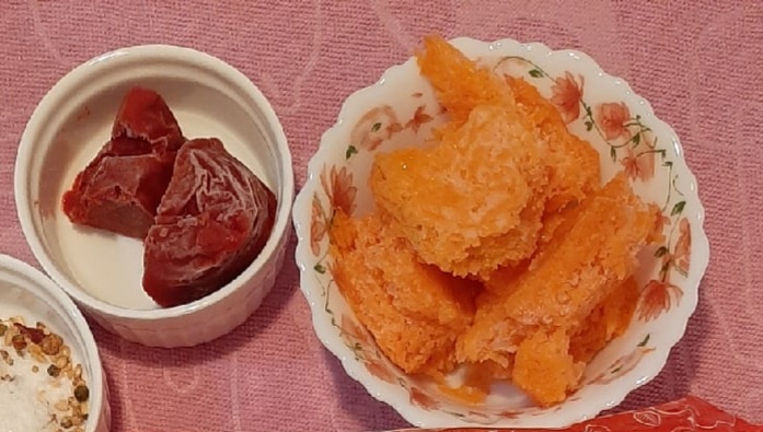 На этой фотографии вы видите замороженную томатную пасту и морковь.Сейчас расскажу конкретно что и как правильно замораживать.