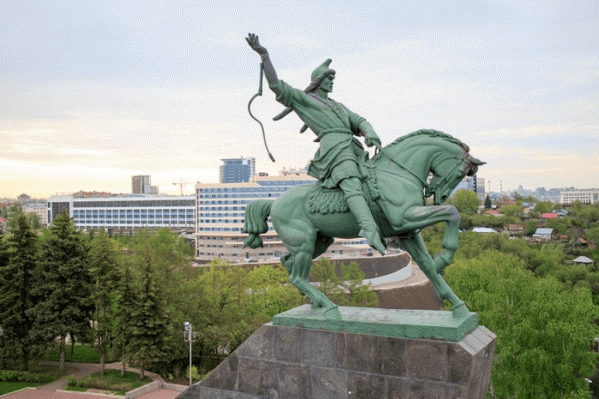 Памятник национальному герою Башкортостана Салавату Юлаеву изображен на республиканском гербе и считается главным символом Башкирии. Монумент на высоком берегу реки Белая в центре Уфы — самая большая конная статуя в Европе.