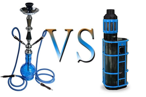 Кальян существует намного дольше электронных сигарет. С конструктивной точки зрения он состоит из небольшой чаши, блюдца, колбы, шахты и шлангов. В этом случае требуется положить табак в чашу, над которой предварительно разжигают угли. Горячий воздух через чашу сквозь фольгу направляется в шахту, где подвергается охлаждению. Далее он переходит в колбу с водой или иной подходящей жидкостью, где трансформируется в пар. Генерируемый пар направляется в шланг, откуда непосредственно доходит до человека. Он не имеет токсичных продуктов и очищен от вредоносных веществ.