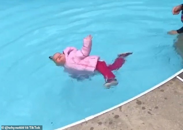 На TikTok появилось видео, которое невозможно смотреть спокойно. Инструктор по плаванию, стоя по пояс в бассейне, толкает в него же годовалого ребенка. Девочка падает в воду прямо в розовой курточке, подгузнике и ботинках.