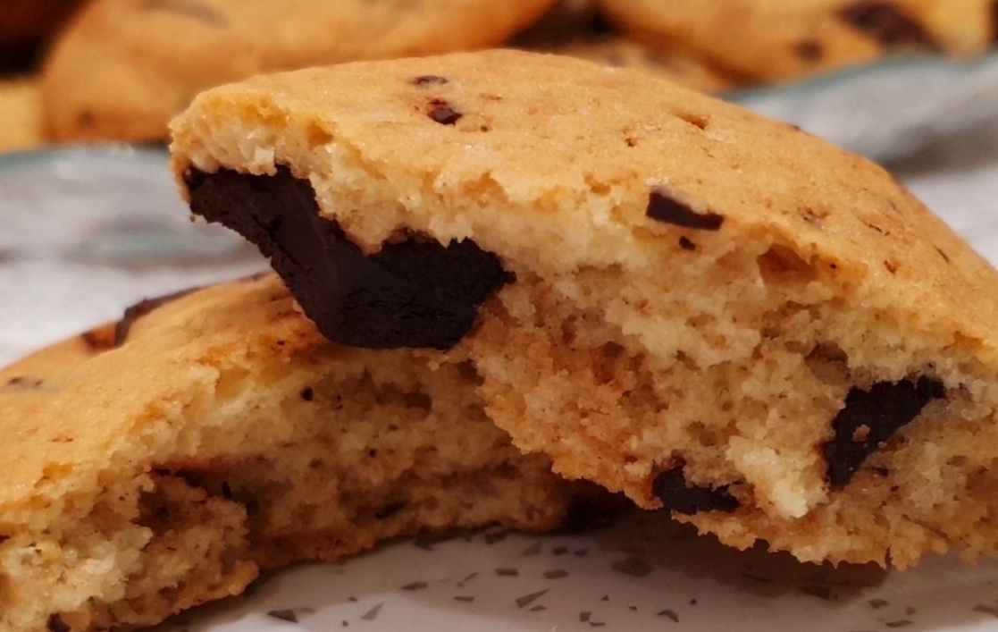Хрустящее, рассыпчатое печенье с кусочками шоколада.