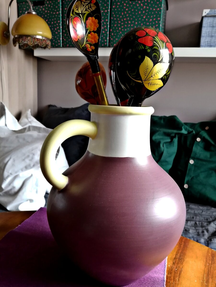 Посмотрите, как можно обыграть обычный кувшин из Ikea. Моя мама собирала ложки со всей России и после поставила их в кувшин. Получилось необычно и стильно. Иногда кувшин стоит на полу. Выглядит очень интересно.
