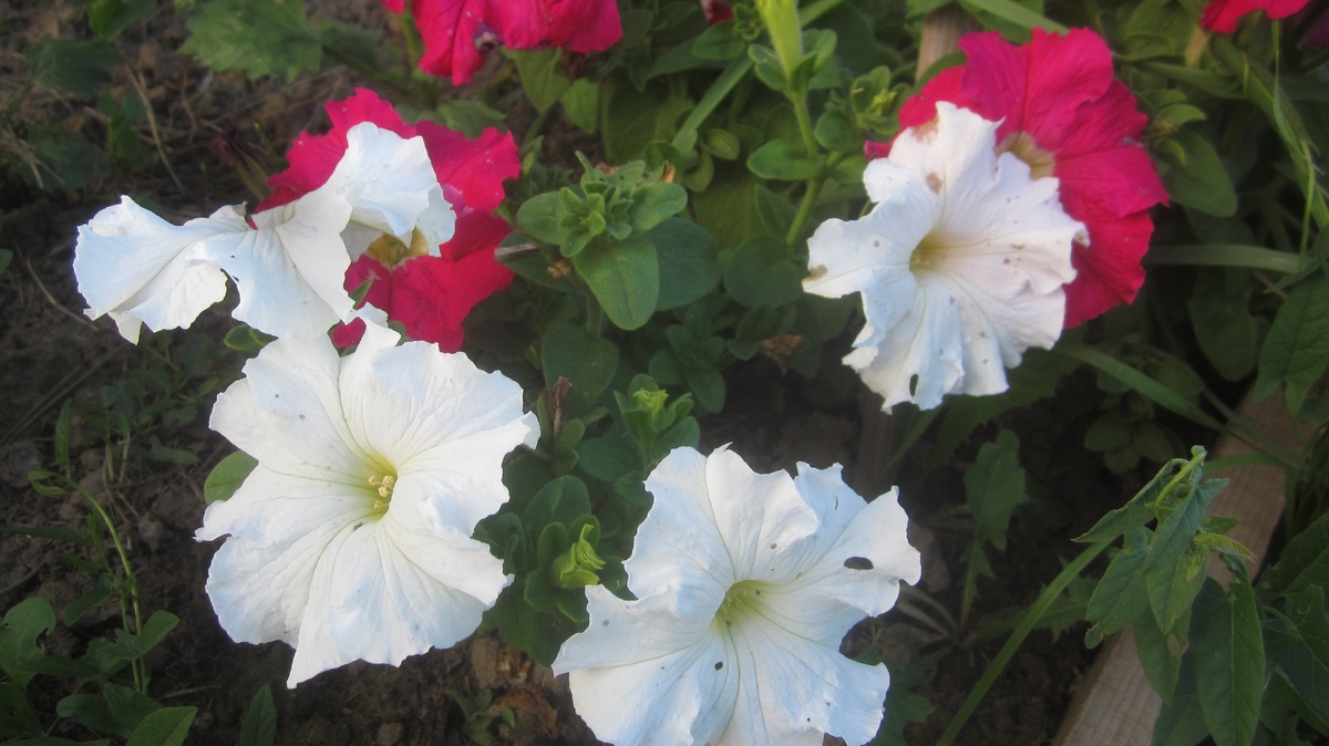 Сажала я и кустовые петунии, и ампельные, и каскадные, а в середине лета мне приехали ещё и черенки вегетативных петуний. Вобщем, много всего.