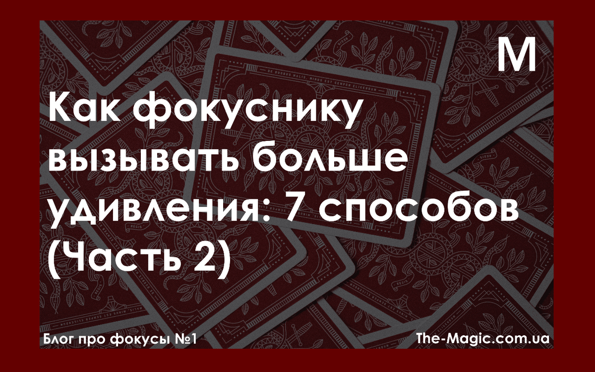 У этой статьи есть первая часть: https://www.the-magic.com.ua/2020/10/04/kak-fokusniku-vyzyvat-bolshe-udivleniya-7-sposobov-chast-1/