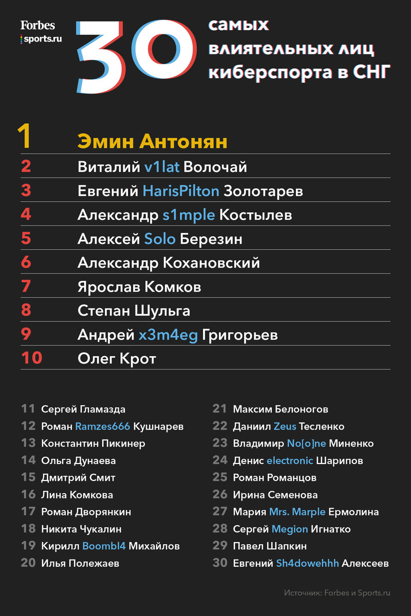 Sports.ru и Forbes представляют важнейший проект осени – рейтинг самых влиятельных людей в СНГ-киберспорте.