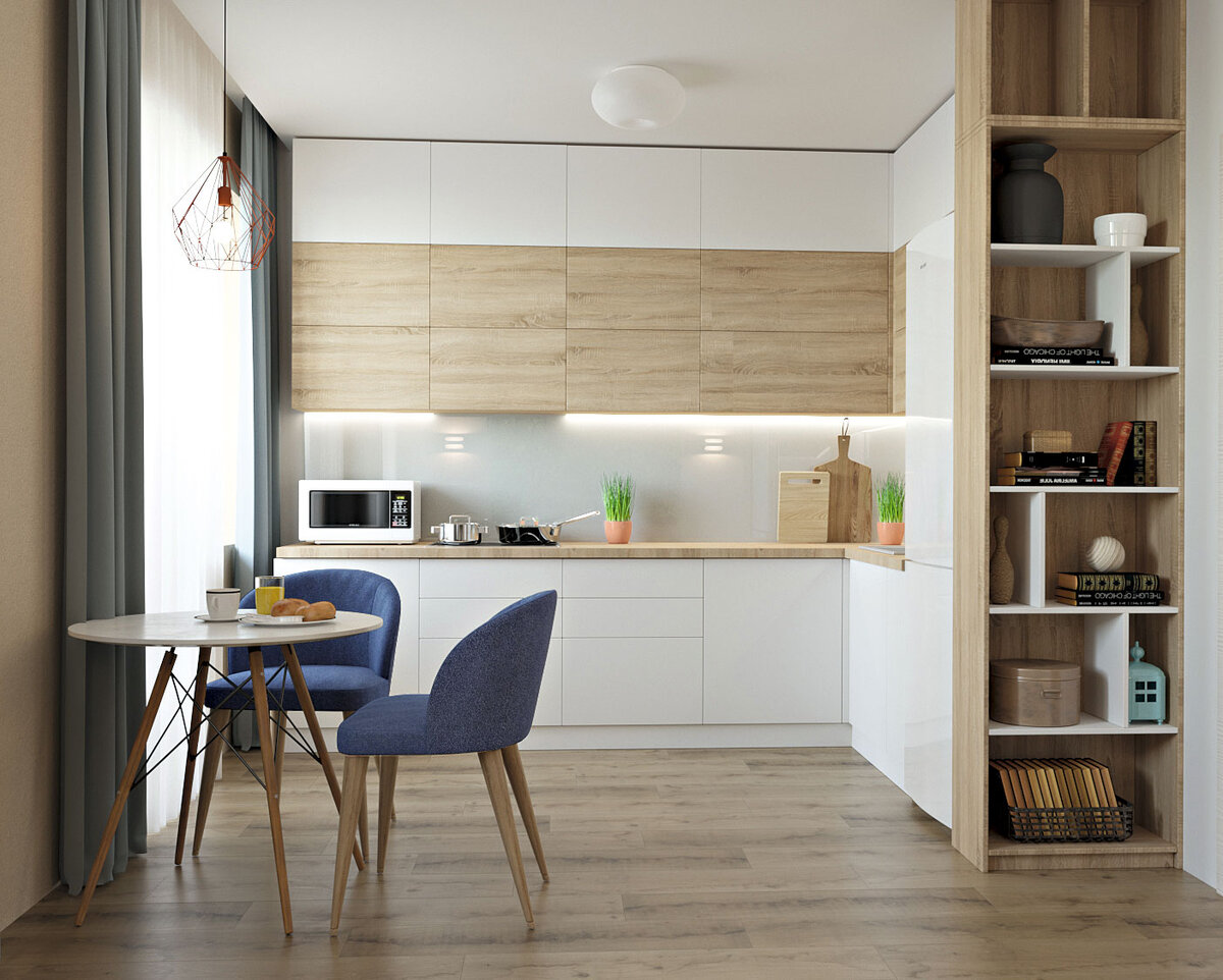 Белый цвет идеален для оформления маленькой кухни, ведь он имеет свойство отражать свет, за счет чего создает ощущение простора и визуально раздвигает стены.