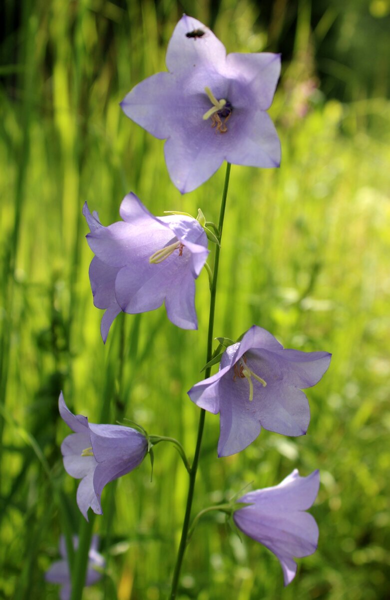 Колокольчик персиколистный - очаровательный и трогательный многолетний цветок, высотой около 50-70 см. В дестве я часто видела этот колокольчик на окраинах заброшенных полей, около леса, вдоль просёлочных дорог, на опушках леса, а в настоящее время - это уже редкость. Наш колокольчик, как раз из дикоросов - вырос рядом с участком в месте, где его просто бы затоптали. Колокольчик пересадили, и к нашей радости, он растет и радует цветами. Колокольчик персиколистный не любит излишне глинистую почву, но и очень песчаная почва ему не подойдет, любит свет, но не прямое выжигающее солнце - вот, наверное, и все сложности в его посадке. В жаркую и засушливую погоду необходим своевременный полив. Укрытие на зиму в средней полосе России растению не требуется. Вредителей и болезней нами замечено не было. Цветет колокольчик в июне-июле около 40 дней, очаровательно покачивая свои объёмные "колокола" диаметром до 4 см при небольшом ветерке. Цветок имеет слабый аромат, являеется медоносом. Облад