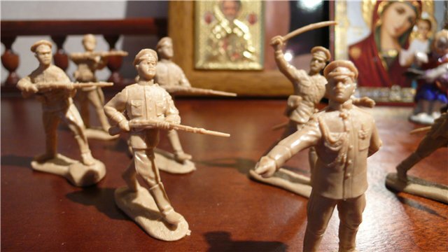 В сопротивление входили: пластмассовый танк с красной звездой на корпусе, с оплавленным и от этого грустно свисающим дулом к полу; три солдатика, застывшие в различных позах на пластиковых подиумах; фигурка человека но с лосиными рогами и мордой в футуристичном костюме, каким-то случайным образом попавшая в их отряд; пустая коробка спичек играющая роль вымышленного БТР. Отчаянно отбивая атаки захватчика, уворачиваясь от невидимых пуль, они строго старались держать строй.