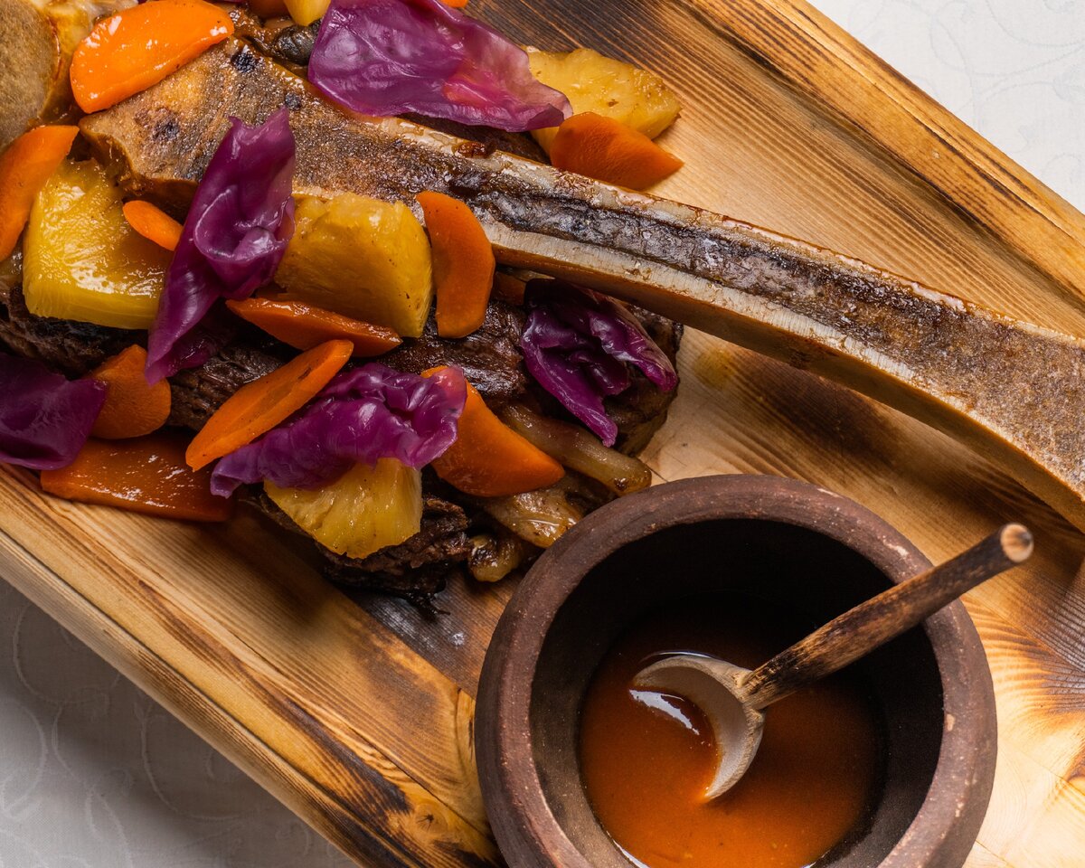 Конину я очень люблю и пробовал ее в самых разных видах: вяленую, копченую, вареную, а в Астане как-то попробовал чоризо – перченую, ярко-красную испанскую колбасу – сделанную из конины. Но якуты принципиально едят именно жеребятину, нежную и мраморную. Из нее, собственно, тоже делают все что угодно. Я пробовал рагу из жеребятины с овощами и строганину из жеребятины: максимально мраморной, слоеной, как наполеон.