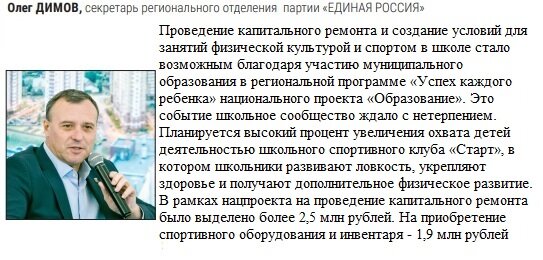 - Проведение капитального ремонта и создание условий для занятий физической культурой и спортом в школе стало возможным благодаря участию муниципального образования в региональной программе «Успех каждого ребенка» национального проекта «Образование». Это событие школьное сообщество ждало с нетерпением. Планируется высокий процент увеличения охвата детей деятельностью школьного спортивного клуба