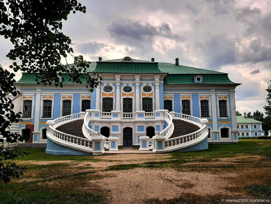 А роскошная парадная лестница, опоясывающая полукругом северный внешний фасад дворянского дома, напомнит об эпизодах сериала Вольная грамота, съемки которого в том числе проходили в усадьбе Хмелита.
